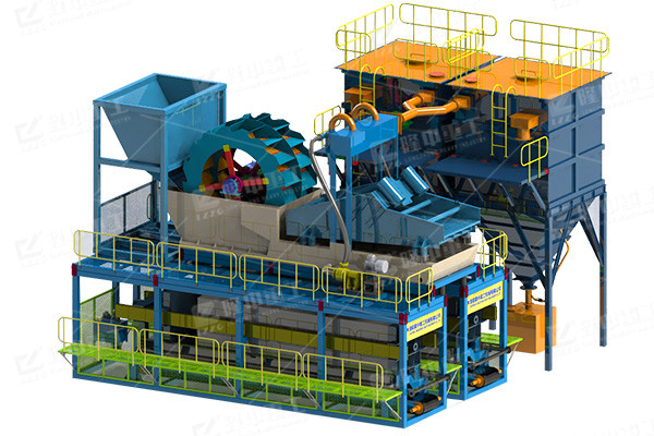 3、一體化設計:集成洗砂、回收、脫水、濃密、壓濾等功能于一體,組合架體設計,模塊化組裝,機型更改空間自由度較高,拆裝靈活性更大。